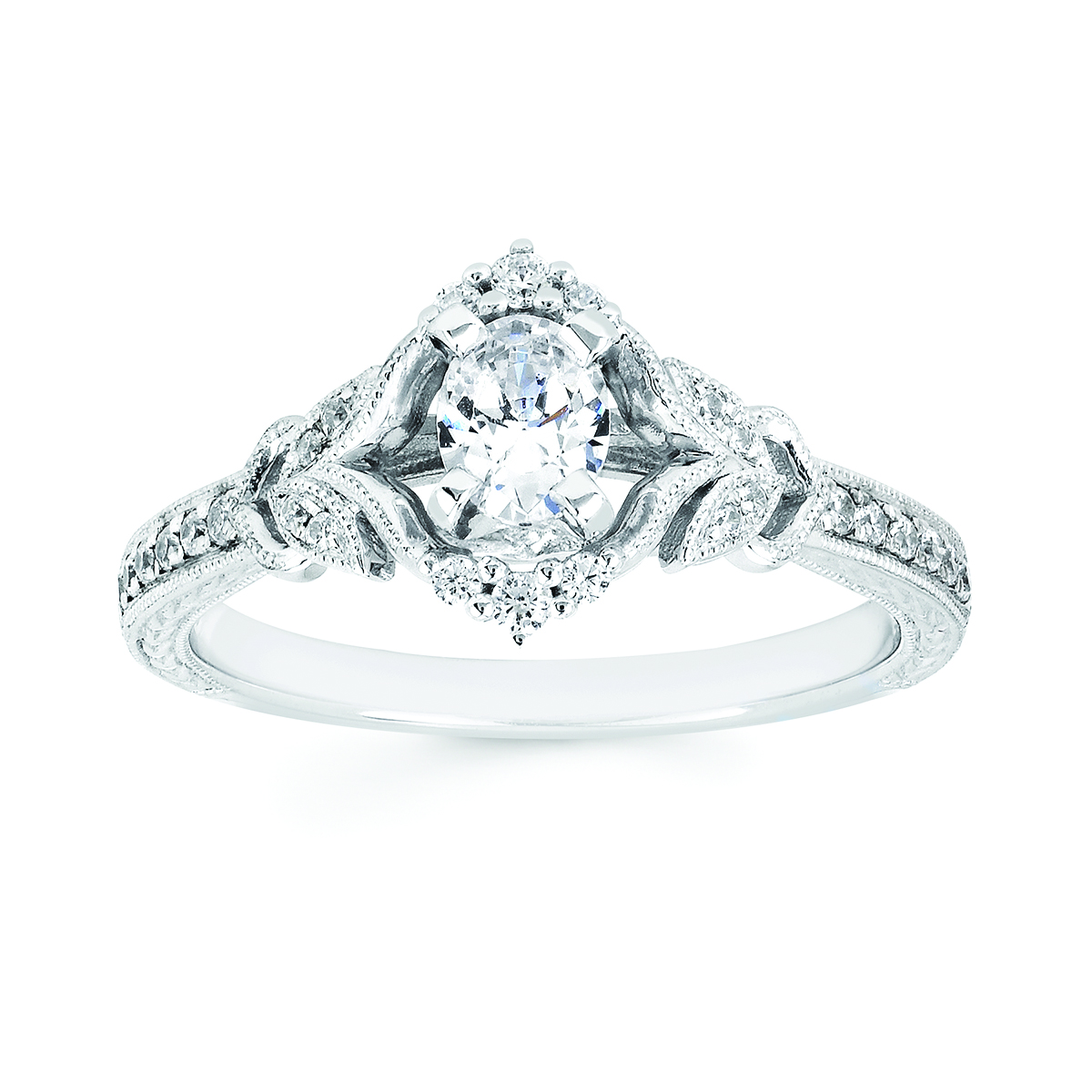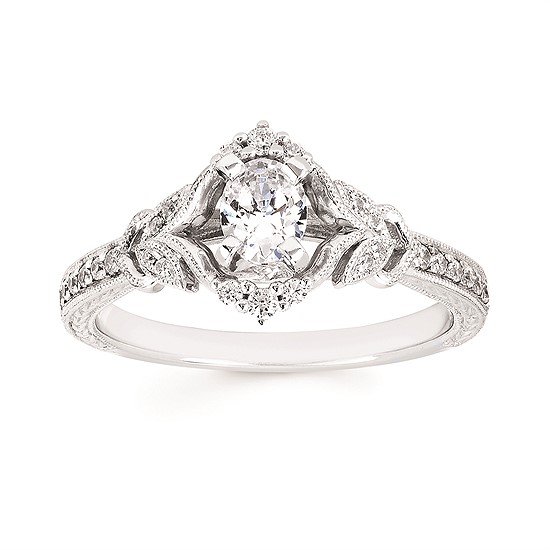 Engagement Ring Vintage Bridal: 1/6 Ctw. Diamond Semi Mount available for 1/3 Ct. Oval Center Diamond in 14K Gold